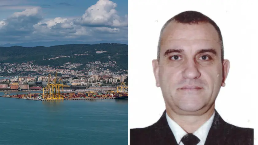 A sinistra una veduta del Porto di Trieste, a destra il capitano di fregata Gianluca Civitarese