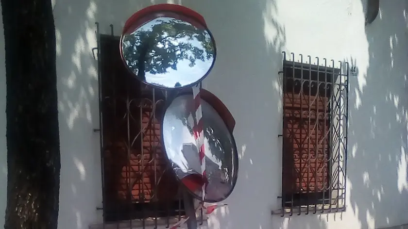 Diversi goriziani segnalano le condizioni dello specchio parabolico sul marciapiede di via Orzoni, nel quartiere di Montesanto, di fronte al civico 41. Il palo che lo sorregge è piegato, e lo specchio è rotto, potenziale pericolo anche per i pedoni. —