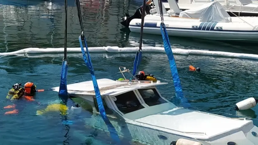 Recuperata una barca di 7 metri affondata nel porticciolo a Muggia