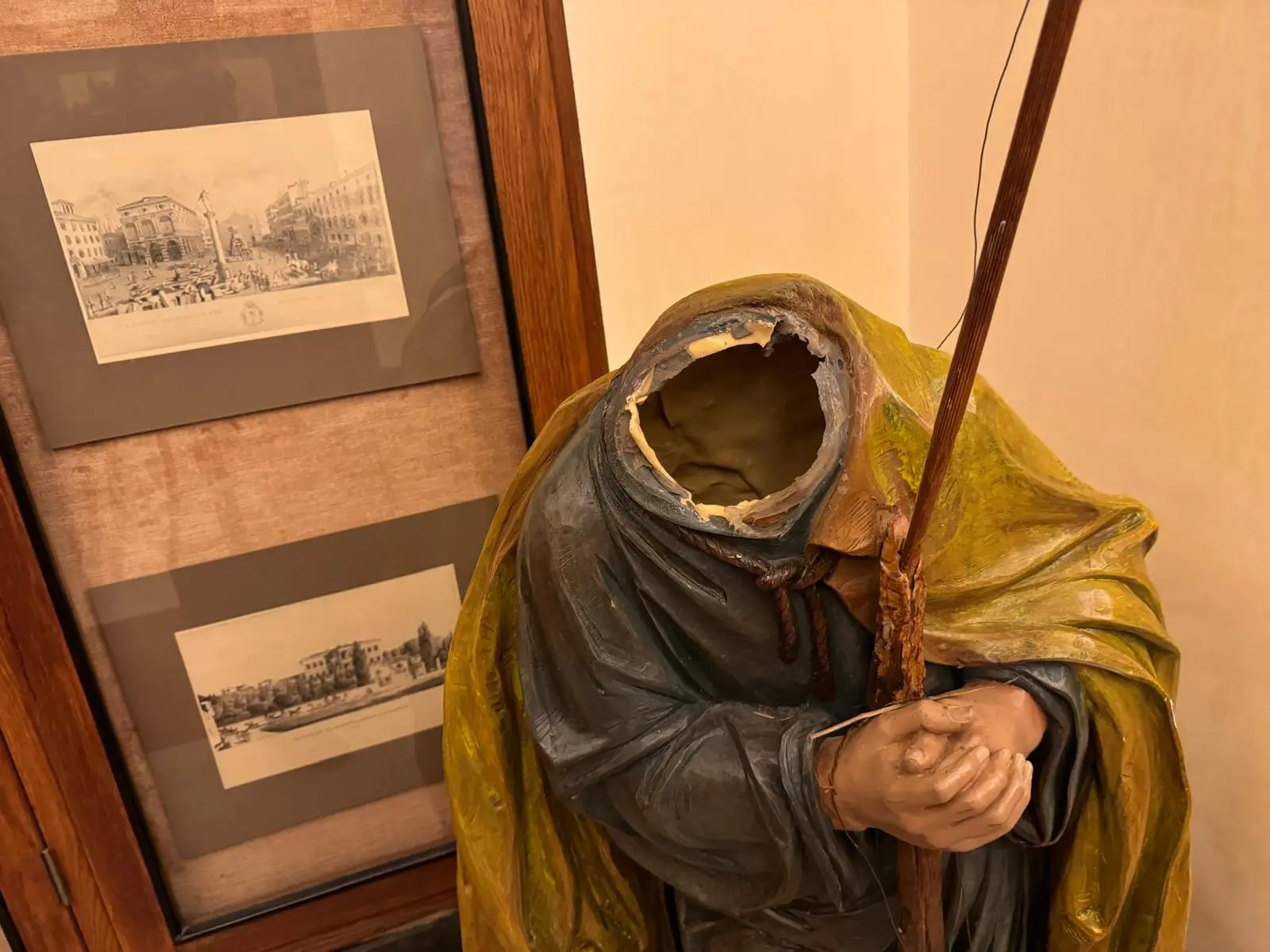 La statua di un pastore, giunto nella grotta di Betlemme per rendere omaggio a Gesù bambino, è stata mozzata: vandalizzata, decapitata nel cuore della notte. Il sindaco si è precipitato in piazza appena saputa la notizia.