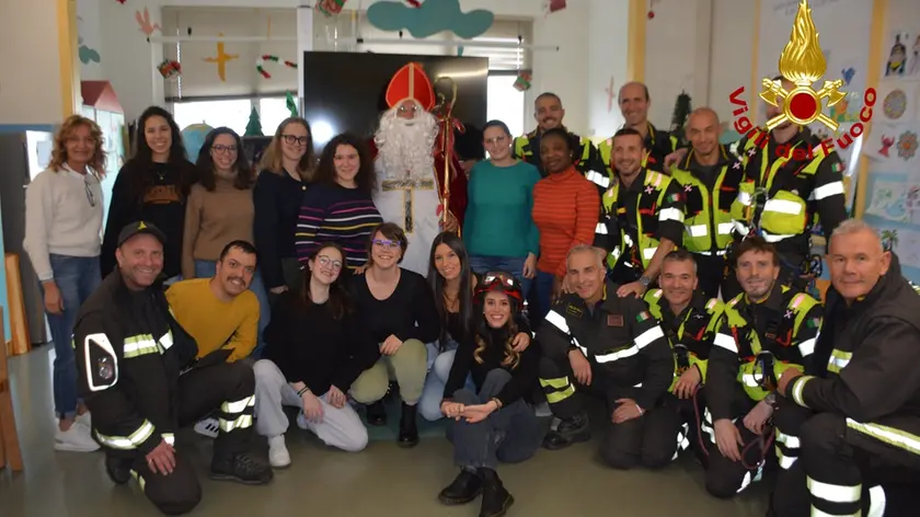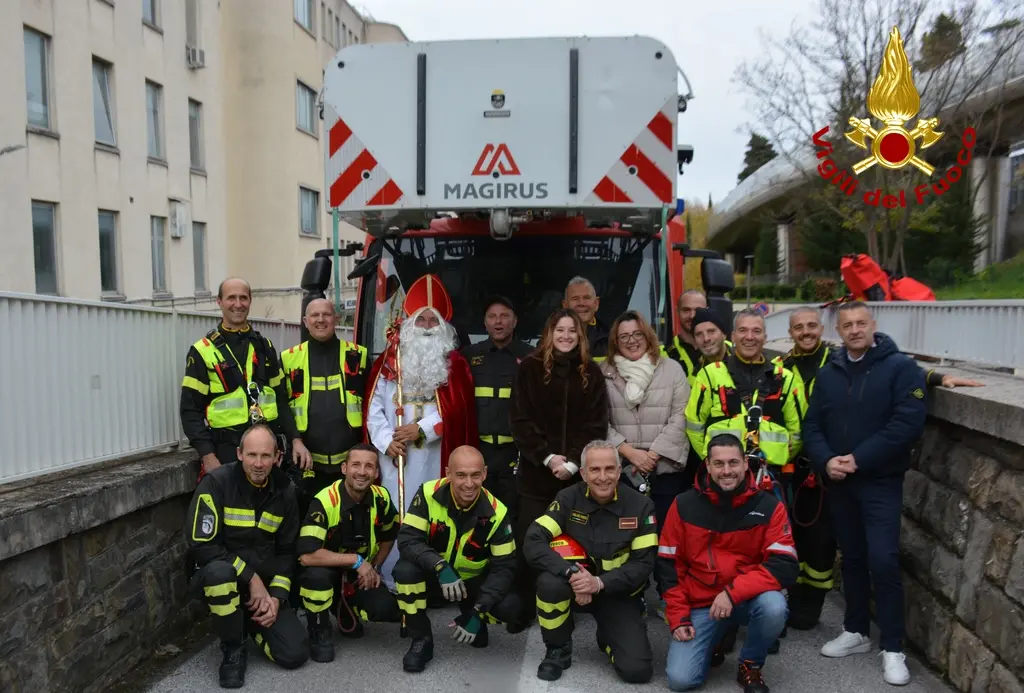 I vigili del fuoco accompagnano San Nicolò al Burlo di Trieste