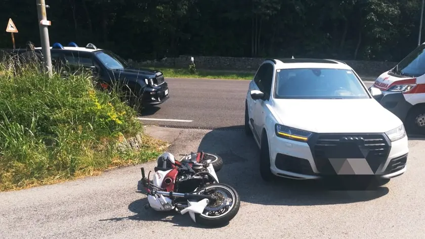 DUINO Incidente stradale attorno alle 15.30 di martedì 20 luglio a Duino, all'altezza dell'incrocio semaforico. Per cause in corso di accertamento da