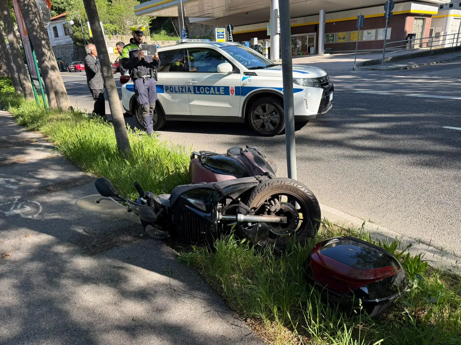 Incidente in viale Miramare a Trieste, poco prima dell'incrocio con Roiano: il conducente del mezzo a due ruote trasportato in ospedale. Rallentamenti al traffico in direzione piazza Libertà