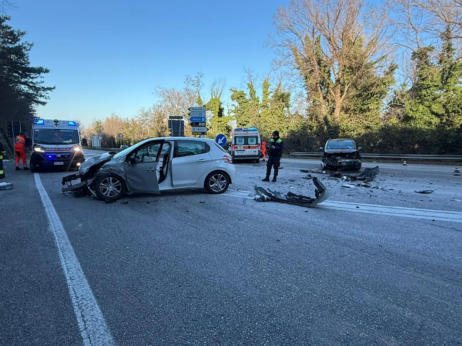 Tanto da distruggere le parti anteriori delle vetture coinvolte e spargere detriti sull'asfalto, per diversi metri. Le auto sono entrate in collisione al bivio. Alla base c'è, con tutta probabilità, una mancata precedenza. Ma saranno le indagini a chiarire cause e dinamica.