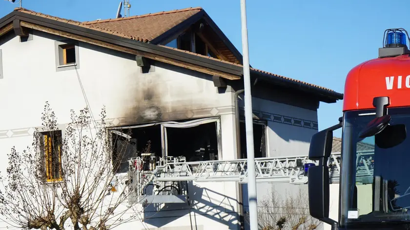 La casa interessata dall’incendio e l’intervento in forze dei vigili del fuoco Fotoservizio Roberto Marega