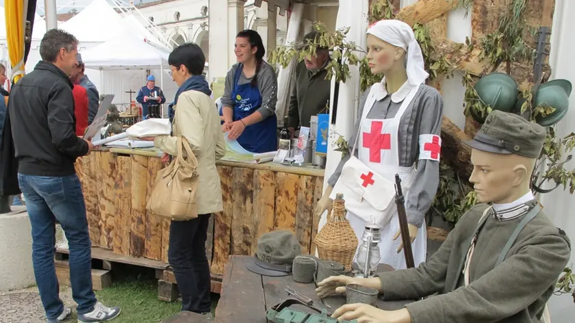 FOGLIANO REDIPUGLIA. Obiettivo raggiunto. Anche “Sapori Pro loco”, la manifestazione organizzata dal Comitato regionale dell’Unione nazionale delle Pro loco d’Italia, ha dato modo ai “Sentieri di pace” di far conoscere la realtà, i programmi, l’offerta turistica e culturale del Carso della Grande guerra. Un’offerta resa ancor più attuale nell’anno in cui si celebrano i cento anni dallo scoppio della prima conflitto mondiale. La Pro loco di Fogliano Redipuglia lo ha fatto attraverso la promozione di uno stand nel quale la parte del leone l’ha fatta il cosiddetto “rancio del soldato”, ovvero la preparazione dei cibi che, allora, erano nelle gavette dei soldati. Goulash e patate in rappresentanza del cibo imperiale dell’Austria-Ungheria e maccheroni al ragù per il Regio Esercito Italiano, eccezionalmente con l’aggiunta di un bicchiere di vino rosso della Riserva speciale delle trincee del Carso. Un’offerta promozionale, abbinata, alla presenza dei rievocatori storici e degli esperti che, in questo modo, sono riusciti a catturare la curiosità e l’interesse del vasto pubblico presenta alla manifestazione promossa nella cornice di Villa Manin. Tra visitatori anche il vicepresidente della Regione, Sergio Bolzonello, al quale il coordinatore dei “Sentieri di pace”, Franco Visintin non ha mancato di sottolineare quelli che sono i punti neri dell’offerta turistica che vede Redipuglia in primo piano: la chiusura del cimitero austroungarico, orari di apertura del museo di Casa Terza Armata e la scarsa manutenzione del Sacrario. (lu.pe.)