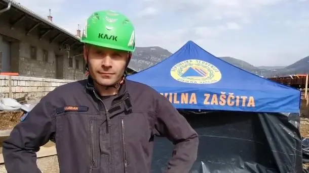 Il luogo del ritrovamento della bomba e, in alto, Aljaž Leban nelle immagini del Comune di Nova Gorica