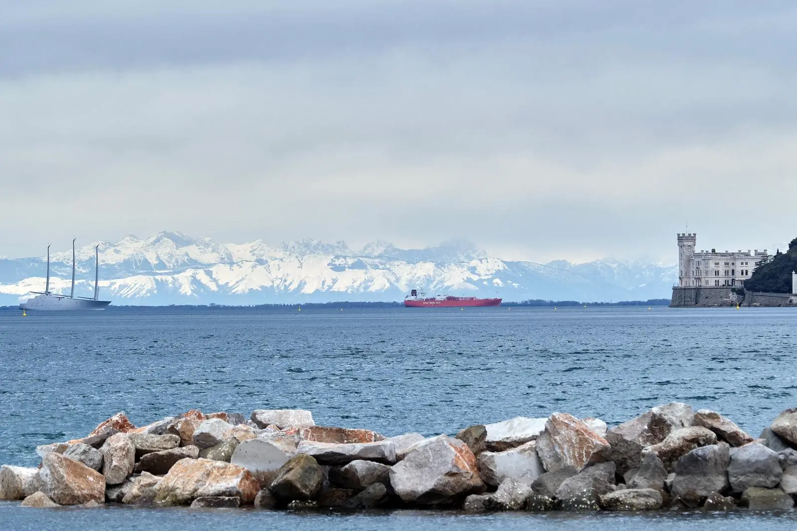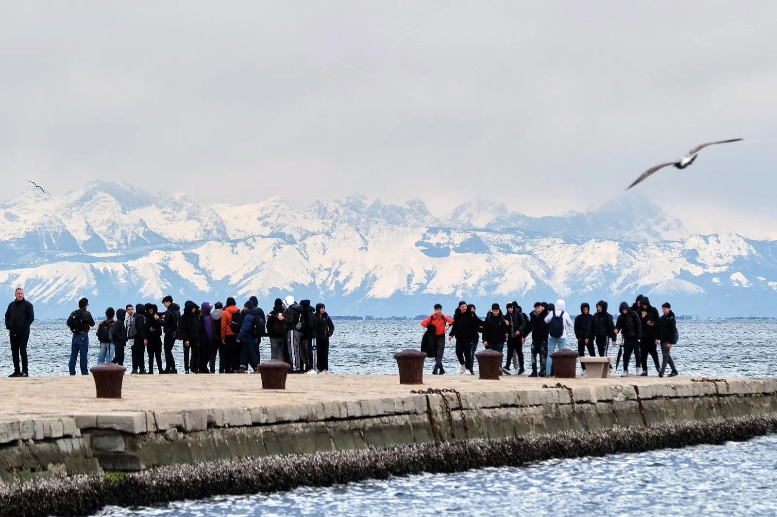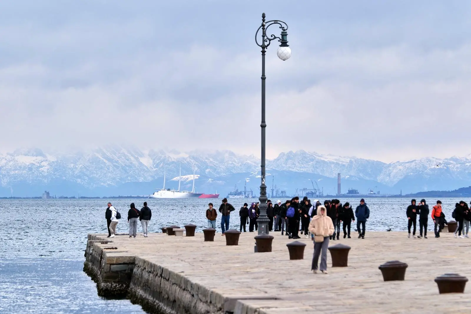 Il monti innevati abbracciano il golfo di Trieste: è la magia dello stravedamento