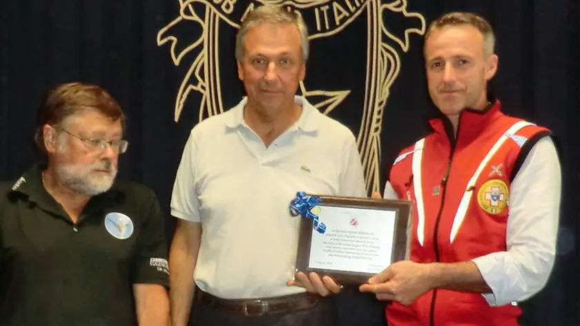 La Società alpina delle Giulie ha premiato con una targa i valorosi e coraggiosi soccorritori della seconda Zona soccorso speleologico del Cnsas regionale che lo scorso 19 giugno in Baviera hanno salvato eroicamente uno speleologo tedesco che si era infortunato a una profondità di 980 metri, nella grotta più profonda della Germania.