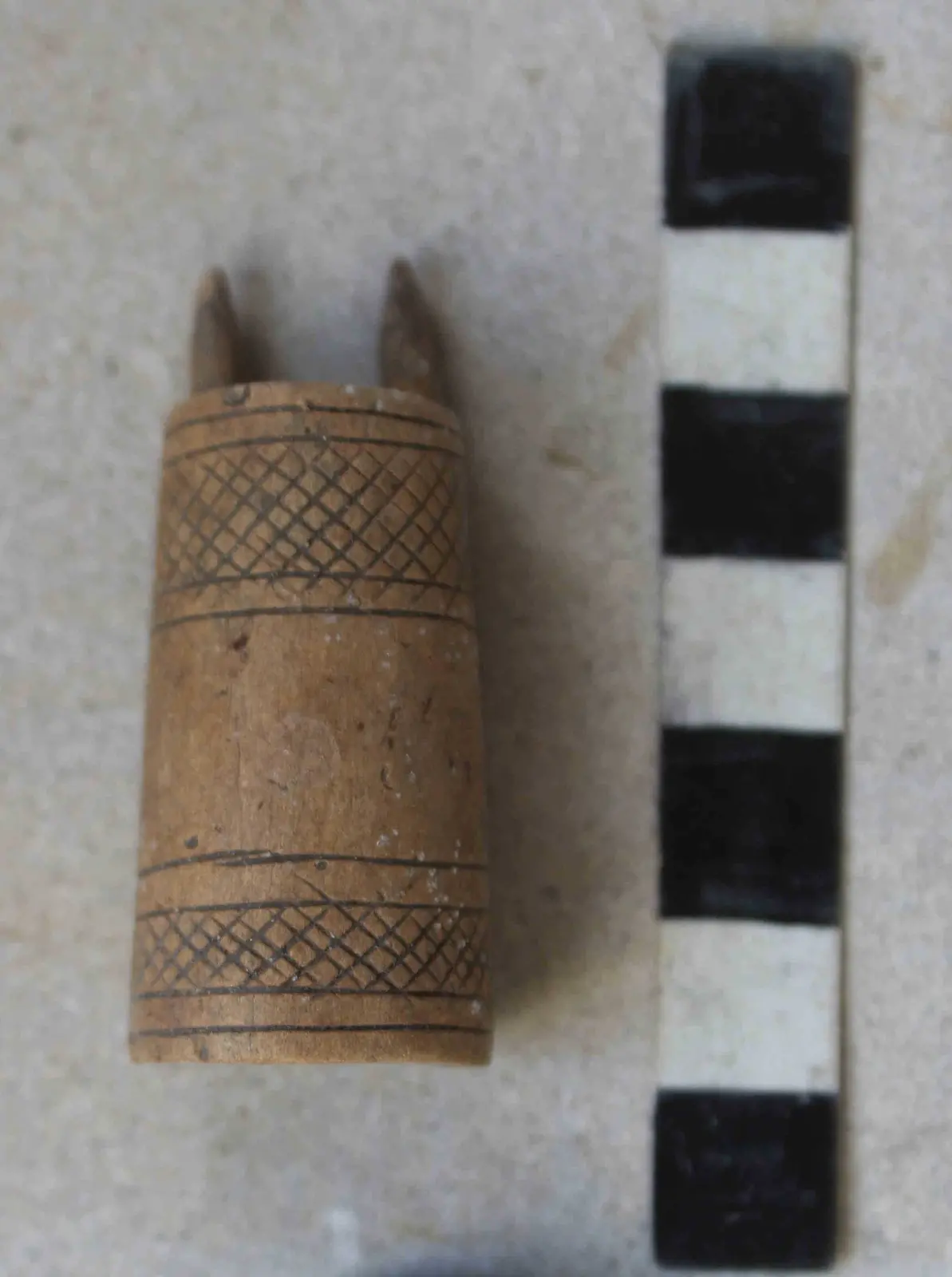 L’attrezzo lungo 50 millimetri è, come detto, in osso. Esemplari simili (ma nessuno è identico nella struttura) si trovano in particolare in Norvegia, Svezia, Gran Bretagna, Francia, Olanda; uno si trova al Museo delle arti di Cleveland negli Stati Uniti e si riferiscono tutti al periodo medioevale.