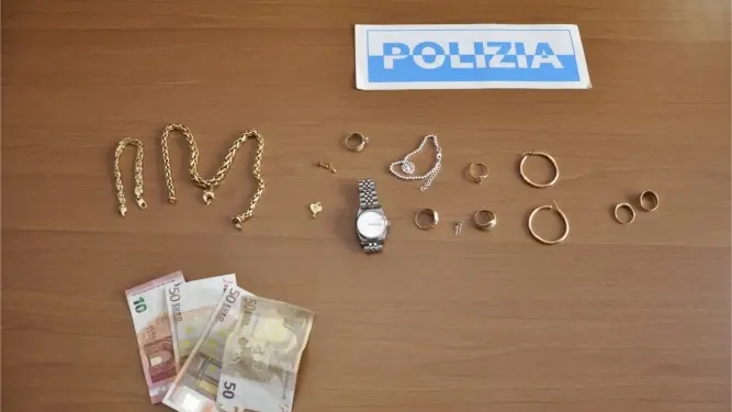 Tutto è stato poi rinvenuto e recuperato nel corso di una perquisizione nella abitazione della donna fermata proprio nel momento in cui stava uscendo da un immobile con nella borsetta un bracciale e una barretta in oro poco dopo riconosciuti dai legittimi proprietari. La donna dopo essere stata dichiarata in arresto è stata posta ai domiciliari.