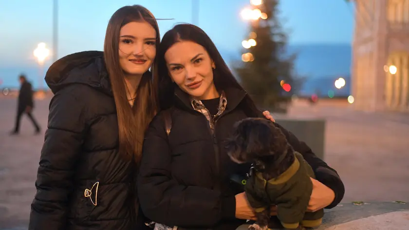 Yana Medviedieva assieme alla figlia Kristina e al loro cane maltese Eros in piazza Unità d’Italia Foto Francesco Bruni