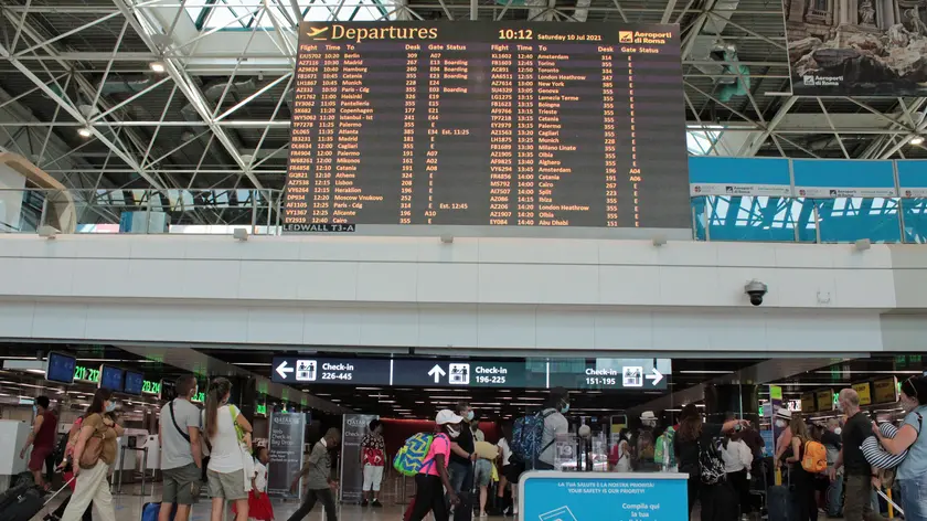 Il Terminal 3 dell'aeroporto Leonardo da Vinci affollato di vacanzieri, Fiumicino (Roma), 10 luglio 2021. Tra le mete preferite dei turisti Spagna e Grecia. ANSA/TELENEWS