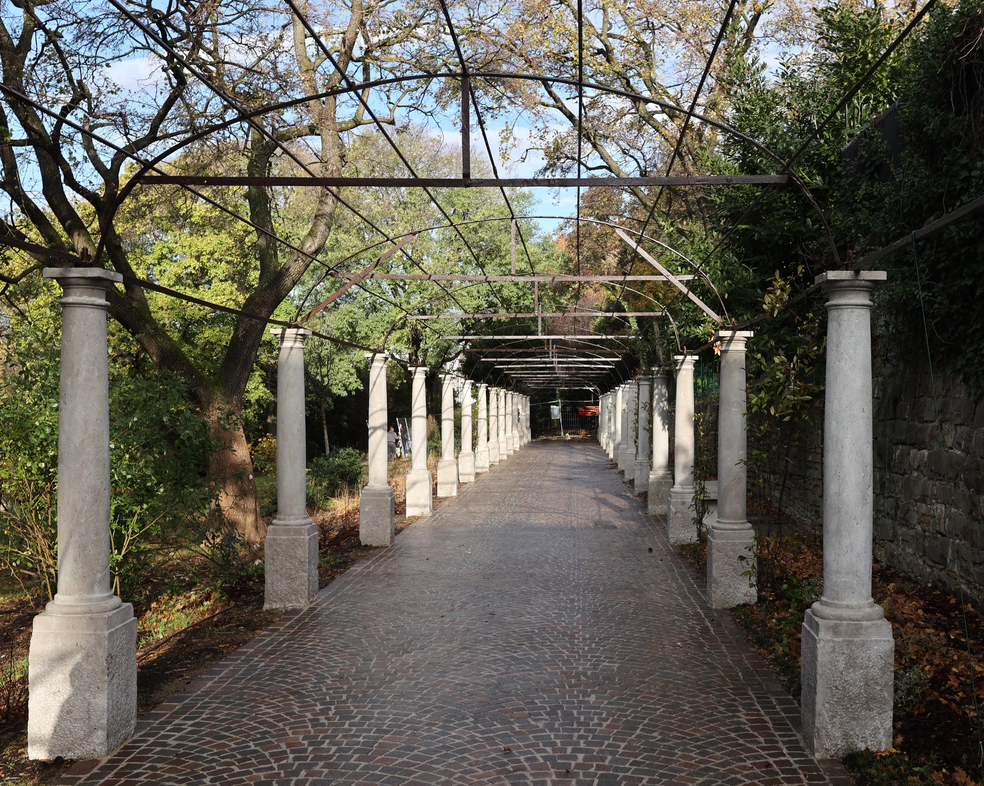 Dopo otto mesi il colonnato del giardino di Villa Engelmann è tornato a nuova vita. Formato da 36 colonne sormontate da una struttura ad archi, era inaccessibile da circa dieci anni a causa del grave degrado strutturale. Ora è stato restaurato con un intervento che ha riguardato il pergolato (colonne e porticato di archi in ferro realizzati senza saldature, si suppone possano essere datati fine’800), la pavimentazione in porfido e la vegetazione, per un investimento complessivo di quasi 250 mila euro.