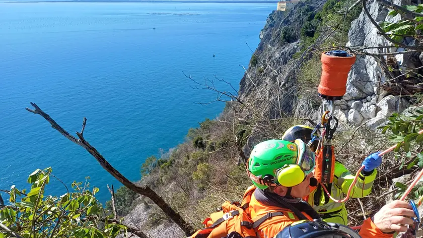 La donna è stata imbarellata con l'aiuto degli altri tecnici e recuperata per essere condotta a Cattinara in codice rosso. I soccorritori sono risaliti lungo la corda autonomamente. In tutto hanno preso parte sette tecnici della stazione di Trieste.