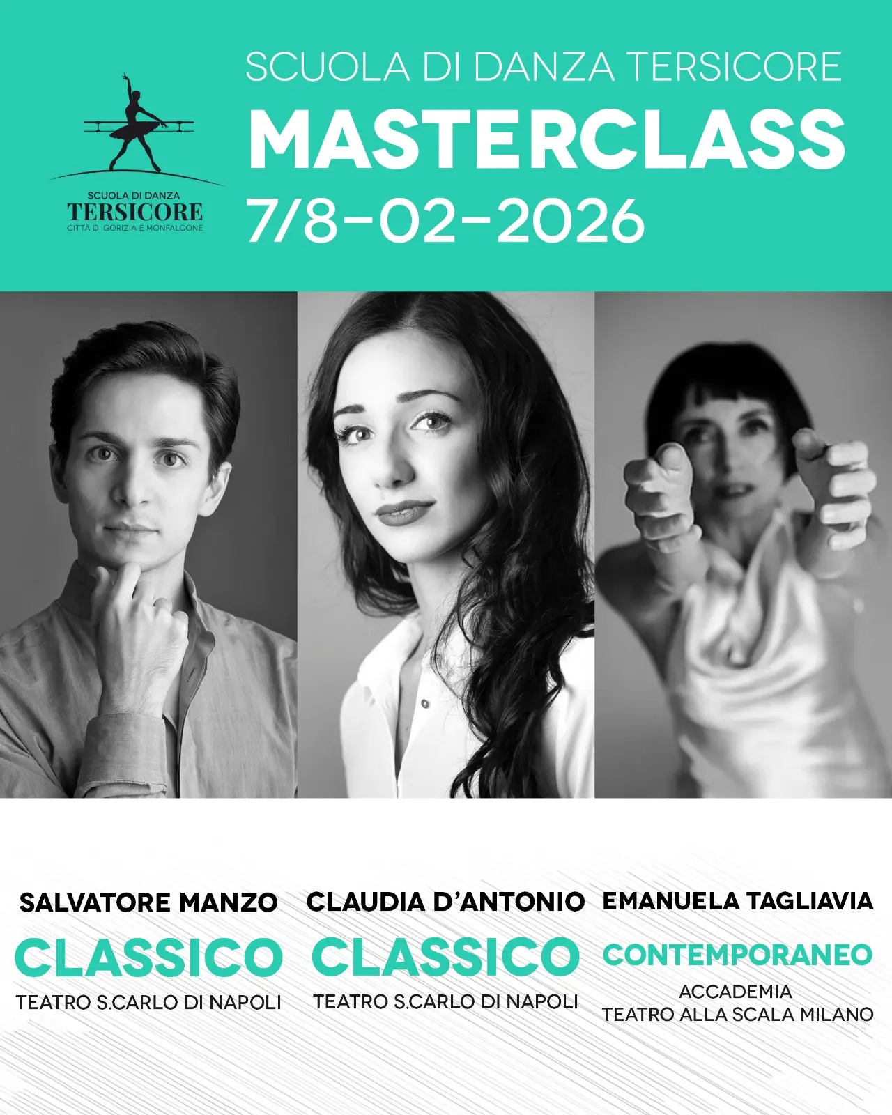 Un galà con molte novità, come l’organizzazione di alcune Masterclass. Sabato 7 e domenica 8 febbraio i ballerini Claudia D’Antonio e Salvatore Manzo, assieme ad Emanuela Tagliavia, docente di danza contemporanea alla Scuola di Ballo dell’Accademia del Teatro alla Scala (dove ricopre anche il ruolo di coreografa) e docente della Civica Scuola di Teatro Paolo Grassi, terranno sedute di approfondimento e perfezionamento per gli allievi delle scuole.