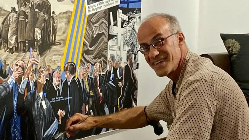 È infatti la gente, tanta, tantissima gente, protagonista dei suoi quadri che mettono insieme e in relazione personaggi ed eventi della storia più o meno recente, pensieri filosofici, scientifici, religiosi, questioni sociali, suggestioni musicali sospese tra Europa e America, con agganci transnazionali che riguardano l’intero nostro globo terrestre.