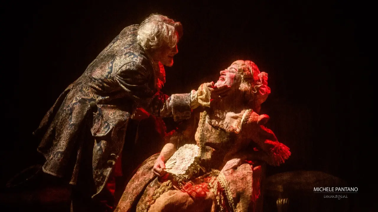 Le figure settecentesche delle Relazioni pericolose sul palco in “Quartett” di Heiner Müller