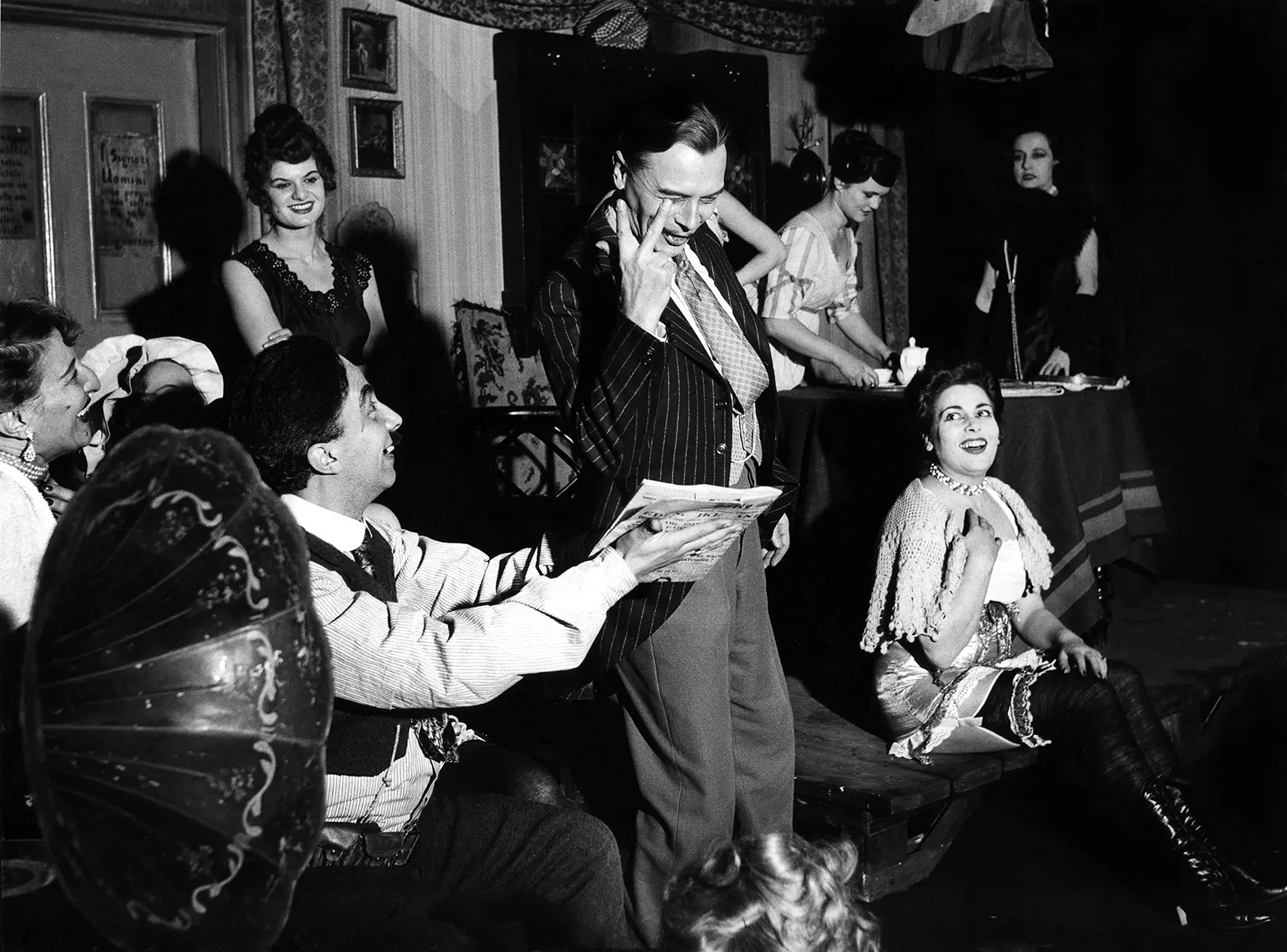 Brecht acconsentì anche a essere presente alla prima dell’Opera il 10 febbraio 1956. E quando già molto malato arrivò in treno alla Stazione Centrale con la figlia Hanne e la fedele collaboratrice Elisabeth Hauptmann, a Milano c’era un tempo da lupi e faceva molto freddo. Per quella manciata di giorni le due donne chiesero perciò alla direzione del Piccolo Teatro di non sovraffaticare Brecht, che tuttavia venne coinvolto in eventi pubblici e dovette incontrare numerosi giornalisti.