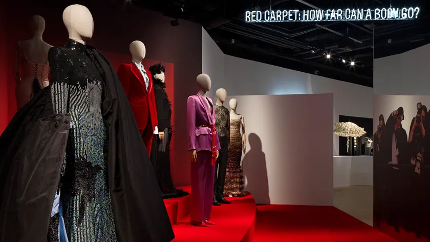 In mostra ci sono outfit che hanno fatto storia. Il leggendario completo di velluto rosso firmato Tom Ford che Gwyneth Paltrow indossò agli Mtv Music Awards del 1996 e ripropose nel 2021 alla Love Parade di Gucci. La mantella di seta nera moiré e l'abito tempestato di 60.000 cristalli Swarovski che Rebecca Ferguson indossò al Met Gala 2024, entrambi firmati Thom Browne e percorsi da corvi neri in omaggio a Edgar Allan Poe. E poi l'ombrello a forma di conchiglia firmato da Luke Brooks, finalista ITS, che Lady Gaga usò per dieci secondi uscendo da un hotel di Londra, trasformando un trasferimento in una performance. Sono questi i momenti che la mostra vuole fermare e restituire nella loro complessità.