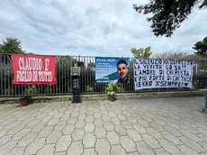 Drappo esposto nello stesso punto di quello con 'Viva Mattarella'