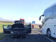 Scontro tra bus di fedeli e auto in Friuli, un ferito