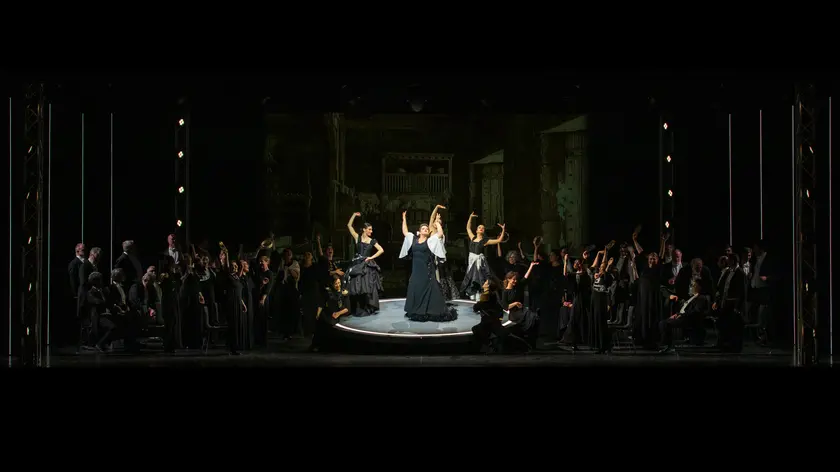 (ANSA) - BOLOGNA, 18 FEB - La Traviata di Giuseppe Verdi firmata nel dicembre 2022 dal regista Alessandro Talevi per gli spazi dell'Europauditorium, primo spettacolo fuori dalla sede storica del Teatro Comunale di Bologna, da allora chiuso per ristrutturazione, torna il 21 febbraio al Comunale Nouveau, ripensata per il nuovo palcoscenico. Sul podio dell'Orchestra della Fondazione bolognese debutta Leonardo Sini, trentaseienne direttore sassarese primo premio al Concorso Solti di Budapest. Per Sini si tratta di un periodo di importanti debutti: dopo l'esordio al Teatro Lirico di Cagliari con Lucrezia Borgia e questa Traviata, dirigerà anche Le nozze di Figaro all'Opera di Colonia. Alessandro Talevi, vincitore dell'European Opera-Directing Prize, ripropone la sua lettura del capolavoro verdiano ponendo l'accento su Violetta come figura trasgressiva, "capace di sfidare le convenzioni morali. Una donna che usa consapevolmente la propria bellezza per costruire un mondo fragile fatto di lusso e divertimento, attirando l'alta società 'come falene verso la luce'. Ma quello stesso fascino alimenta voyeurismo e giudizio - spiega Talevi - I 'guardoni' che ne ammirano l'avvenenza finiscono per esultare segretamente della sua caduta, riflesso di una società attratta da chi infrange le regole e poi soccombe, in questo caso a una malattia mortale". L'ambientazione è moderna, con richiami senza tempo. Nel ruolo di Violetta canterà il soprano Adela Zaharia, già applaudita nella stessa parte alla Los Angeles Opera e alla Deutsche Oper Berlin. Alfredo Germont è il tenore Francesco Meli, volto conosciuto al pubblico bolognese, ospite di teatri come il Metropolitan di New York e il Teatro alla Scala. Giorgio Germont è invece interpretato dal baritono Claudio Sgura, presenza alla Wiener Staatsoper e all'Opéra National de Paris. In alcune date si alternano Julia Muzychenko, Davide Tuscano e Lodovico Filippo Ravizza. Il Coro è preparato da Gea Garatti Ansini. Lo spettacolo si replica il 22, 24, 25 e 28 febbraio e l'1 marzo. (ANSA).