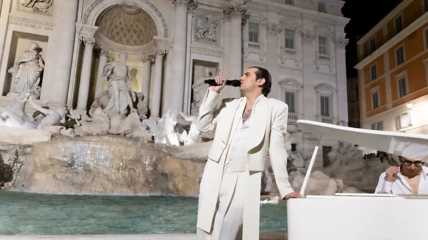 (ANSA) - ROMA, 18 APR - Achille Lauro ha trasformato Roma in un grande palcoscenico all'aperto con un'apparizione a sorpresa alla Fontana di Trevi. Uno spettacolo improvvisato davanti a uno dei luoghi più iconici della Capitale, pensato per presentare il nuovo progetto musicale legato a Comuni Immortali, uscito proprio il 17 aprile 2026. Nel corso dell'esibizione Achille Lauro elegantissimo vestito in bianco ha eseguito alcuni dei suoi più grandi successi, tra cui Amor, Incoscienti Giovani, Comuni Immortali (focus track della nuova versione) e Amore Disperato. Ad accompagnarlo, Boss Doms, Gregorio Calculli e Daniele Nelli. Il risultato è stato un momento quasi cinematografico, con pochi fortunati spettatori immersi in un'atmosfera suggestiva, mentre Roma tornava protagonista di una narrazione artistica fatta di musica e immagini urbane. (ANSA).