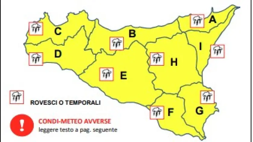 Allerta meteo gialla, rischio piogge abbondanti sulla Sicilia