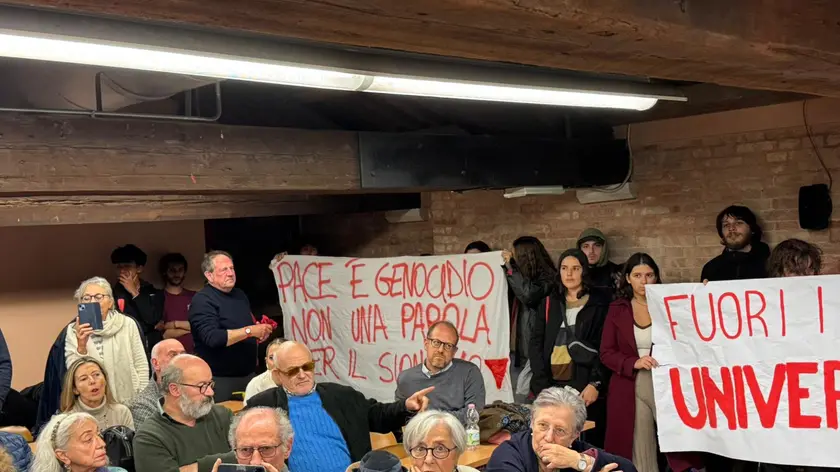 (ANSA) - VENEZIA, 27 OTT - Un gruppo di attivisti pro Pal ha impedito questo pomeriggio lo svolgimento di un incontro-dibattito sulle prospettive di pace in Medioriente nell'Università di ca' Foscari a Venezia, interrompendo un incontro a cui stava prendendo parte il parlamentare Emanuele Fiano (Pd), con slogan e cartelli contro il sionismo. "Ho provato in tutti i modi a continuare - ha riferito Fiano all'ANSA - ma hanno continuato a parlare e a dire su di me falsità. Il principio fascista che hanno loro in mente è che chi non ha idee come le loro non deve parlare". (ANSA).