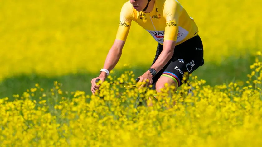 (ANSA) - ROMA, 30 APR - Tadej Pogacar vince anche le volate di gruppo. Dopo la prima tappa del Giro di Romandia, conquistata in uno sprint ristretto, lo sloveno si è imposto anche nella seconda frazione, la Rue-Vucherens di 173,1 chilometri, tagliando la linea del traguardo davanti al campione nazionale francese Dorian Godon e al neozelandese Finn Fisher-Black. Con questo successo, il campione iridato consolida ulteriormente anche la sua maglia gialla di leader della corsa. (ANSA).