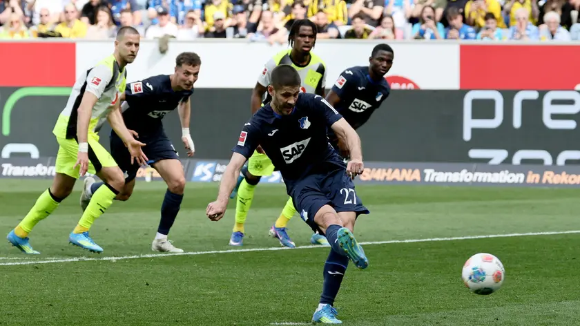 (ANSA) - ROMA, 18 APR - Il Borussia Dortmund é stato sconfitto 2-1 in trasferta contro l'Hoffenheim nella 30/a giornata della Bundesliga, subendo la seconda sconfitta consecutiva. Un risultato che offre al Bayern Monaco la prima opportunità di conquistare il titolo già domani. Con 64 punti, il Borussia Dortmund chiuderà la stagione con un massimo di 76 punti se vincerà le ultime quattro partite di campionato, eguagliando il punteggio attuale del Bayern. Gli uomini di Vincent Kompany saranno quindi matematicamente fuori dalla portata del Dortmund se conquisteranno un punto in casa contro lo Stoccarda domani pomeriggio. Ma con una differenza reti complessiva nettamente migliore (+78 contro +30), 76 punti dovrebbero essere sufficienti per la squadra di Monaco per chiudere la stagione al primo posto. Oggi il Borussia Dortmund é stato battuto ancora, una settimana dopo il ko casalingo contro il Bayer Leverkusen (1-0) al Westfalenstadion. I gialloneri hanno subito due rigori, entrambi trasformati da Andrej Kramaric (42' e 90'+8), mentre Serou Guirassy aveva pareggiato momentaneamente per il Borussia (87'). (ANSA).