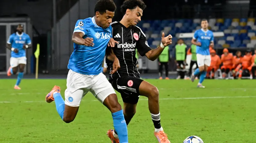(ANSA) - ROMA, 04 NOV - Il Napoli si fa fermare sullo 0-0 al Maradona dall'Eintracht Francoforte nel quarto incontro della fase campionato di Champions League. La squadra di Antonio Conte comincia bene, sfiorando subito il gol con Hojlund ma col passare dei minuti i tedeschi trovano le misure cominciano a reagire. Occasione da entrambe le parti anche nella ripresa, con McTominay che ne spreca una importante nel finale di gara. Il Napoli sale a quota 4 in classifica, gli stessi dell'Eintracht. (ANSA).