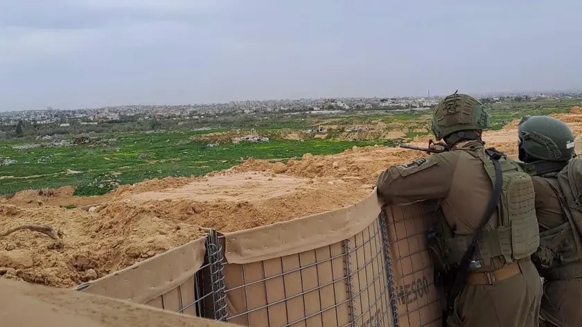 (ANSA) - GAZA, 12 FEB - A 500 metri dalla Linea Gialla, la zona controllata dall'esercito israeliano dentro Gaza, i colpi di arma da fuoco si sentono di continuo. Dall'avamposto militare dentro la Striscia, dove l'ANSA è entrata embedded con l'Idf, gli spari si sentono chiaramente, e si vede il lampo dei fucili intorno a un edificio sventrato. Subito si alzano i droni, e pochi attimi dopo si vede il fumo che sale. Poi cade il silenzio, interrotto solo dai cani che abbaiano in lontananza. Poi di nuovo, un po' più in là si sentono le armi automatiche. "Chi sta sparando?", "Non si capisce, o noi o loro", risponde un soldato. Ai suoi piedi diversi bossoli di un altra sparatoria. Dall'inizio della tregua nell'enclave, firmata a ottobre in Egitto, le armi non hanno mai smesso di farsi sentire. Come ha potuto vedere oggi l'ANSA dalla piccola postazione militare che guarda sui campi centrali di Deir el Balah. (ANSA).