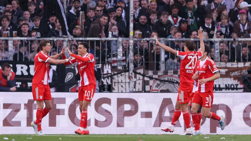 (ANSA) - ROMA, 11 APR - Il Bayern Monaco vince 5-0 ad Amburgo in casa del St. Pauli e ritocca un record storico della Bundesliga: il primato di reti segnate da una squadra, che resisteva dalla stagione 1971-72, quando sempre i bavaresi chiusero a quota 101 (di cui 40 di Gerd Muller). Dopo il vantaggio di Musiala al 9' pt, il gol del sorpasso lo ha segnato a inizio ripresa Leon Goretzka. Poi Olise, Jackson e Guerreiro hanno ritoccato ulteriormente il record fino a 105. E mancano ancora 5 giornate alla fine. La vittoria del Bayern, inoltre, avvicina ulteriormente la squadra allenata da Vincent Kompany alla conquista della Bundesliga: il Borussia Dortmund, secondo, ha perso in casa 1-0 con il Bayer Leverkusen e adesso dista 12 lunghezze dai bavaresi. Un gap praticamente impossibile da colmare. (ANSA).