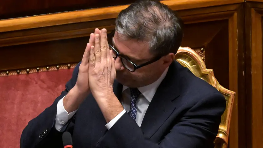 (ANSA) - ROMA, 22 DIC - Il ministro dei Rapporti con il Parlamento Luca Ciriani ha posto, in Aula al Senato, la fiducia sul maxiemendamento "interamente sostitutivo" alla manovra. (ANSA).