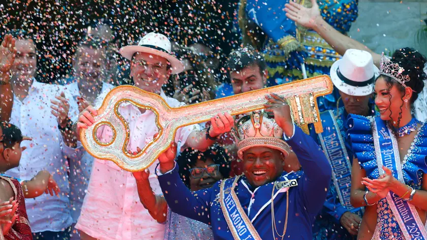 (ANSA) - RIO DE JANEIRO, 13 FEB - Il sindaco Eduardo Paes ha consegnato le chiavi della città al Re Momo Danilo Vieira, aprendo ufficialmente il Carnevale di Rio de Janeiro 2026. La cerimonia si è svolta nel palazzo di rappresentanza del municipio. Il Re Momo è la figura simbolica che, secondo la tradizione, "governa" la città durante i giorni di festa. Introdotto nel 1933 come personaggio di cartapesta, dall'anno successivo il ruolo fu affidato a una persona in carne e ossa. Da quell'anno, per ogni carnevale un nuovo 'sovrano' è scelto nel corso di una selezione insieme a una 'corte'. Nella mitologia greca Momo è il dio della burla e dell'irriverenza. Dal 2024 un decreto municipale rende obbligatoria la cerimonia di consegna delle chiavi, per assicurarne la continuità negli anni. Cresce intanto l'attesa per l'inizio delle sfilate delle celebri scuole di samba del gruppo speciale, previste per domenica, lunedì e martedì al Sambódromo, in quello che è considerato il più grande spettacolo a cielo aperto del mondo. Per l'edizione 2026 il municipio stima un afflusso di circa 8 milioni di persone tra sfilate al Sambódromo e alla Intendente Magalhães, blocchi di strada, balli popolari ed eventi tradizionali in centro. L'impatto economico atteso per la città è di circa 950 milioni di euro (5,9 miliardi di real). (ANSA).