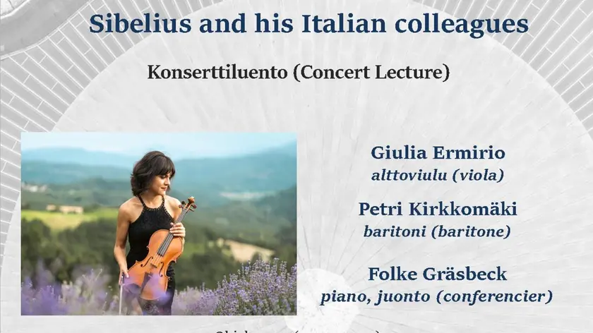 (ANSA) - ROMA, 18 FEB - Lunedi 23 febbraio alle 19 nella chiesa di Temppeliaukio ad Helsinki si terrà la conferenza-concerto 'Sibelius e i suoi colleghi italiani' organizzata dal pianista Folke Gräsbeck in collaborazione con l'Istituto Italiano di Cultura. Ospite di questo evento sarà la violista italiana Giulia Ermirio, figlia di Federico Ermirio (1950-2022), direttore artistico e fondatore del Festival Sibelius Golfo del Tigullio e Riviera. Ermirio fondò il festival nel 2015 in occasione del 150° anniversario della nascita di Sibelius. Dopo la scomparsa di suo padre, Giulia Ermirio ha continuato a ricoprire il ruolo di direttrice artistica del festival. Si esibirà insieme al baritono Petri Kirkkomäki e a Folke Gräsbeck, interpretando brani di Paolo Tosti, Ottorino Respighi e Pietro Mascagni, oltre che di Sibelius. Giulia Ermirio parlerà anche della produzione musicale di suo padre. (ANSA).