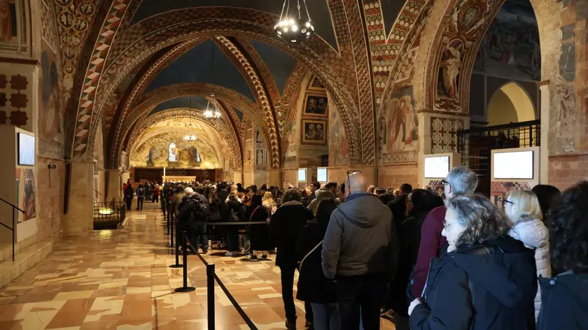 Le spoglie di San Francesco nella cripta tra la preghiera dei frati