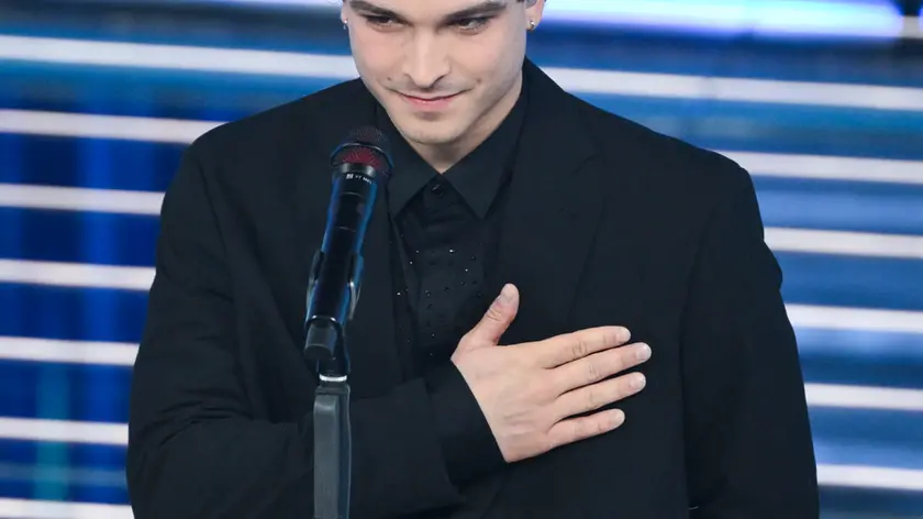 (ANSA) - SANREMO, 28 FEB - "Abbasso la guerra e le tirannie, viva la pace e l'amore!". Sono le parole che Leo Gassmann dice alla fine della sua esibizione all'Ariston dove ha cantato 'Naturale' il brano con cui è in gara. (ANSA).