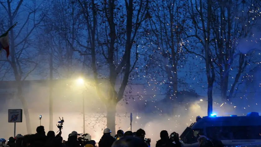(ANSA) - TORINO, 31 GEN - Bombe carta, razzi e fuochi pirotecnici sono stati lanciati dai manifestanti e lacrimogeni sono arrivati in risposta dalla polizia, stretta in un fitto cordone a sbarrare loro la strada. Sta accadendo a Torino, dopo che una parte del corteo per Askatasuna è entrato in corso Regina Margherita, dove al numero 47 c'era la sede del centro sociale, deviando dal percorso previsto. A volto coperto, ci sono autonomi e gruppi di anarchici. Erano rimasti fermi prima a lungo, in attesa del buio, per evitare la ripresa dei loro volti da parte delle forze dell'ordine. (ANSA).