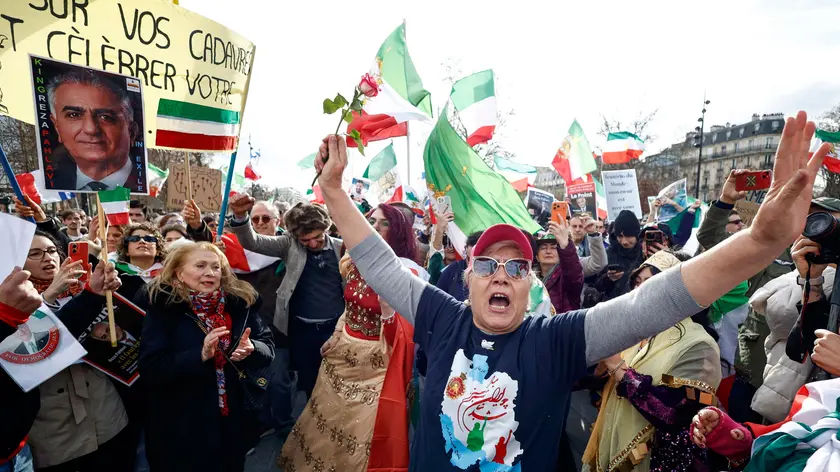 (ANSA) - PARIGI, 01 MAR - Diverse migliaia di persone hanno manifestato oggi pomeriggio a Parigi contro il regime iraniano, nel mirino dell'offensiva di Stati Uniti e Israele. Nel corteo, partito dalla Bastiglia, numerose bandiere della monarchia iraniana (con l'immagine del leone e del sole), ma anche bandiere israeliane, americane e francesi. Ad aprire il corteo, lo striscione "Iran, vita, libertà con Reza Pahlavi", erede dello Scià, seguito da "Make Iran Great Again", con il volto di Pahlavi, di suo padre e di suo nonno. Molti i cartelli e gli slogan inneggianti all'offensiva di questi giorni: "Un sole di libertà accarezza i capelli delle donne iraniane", "Repubblica islamica, assassina dei nostri figli" e "No alla Repubblica islamica terrorista in Iran". (ANSA).