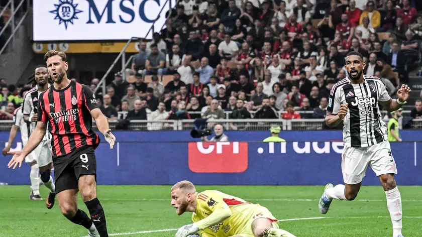 (ANSA) - ROMA, 26 APR - Milan e Juventus hanno chiuso lo scontro diretto di San Siro senza reti, al termine di una partita molto equilibrata, ma non bella. I rossoneri hanno così perso l'occasione di agganciare il Napoli al secondo posto in classifica. Al 36' del primo tempo i bianconeri si sono illusi di essere passati in vantaggio, ma il gol di Khéphren Thuram é stato annullato per fuorigioco. Ad inizio ripresa Saelemaekers ha colpito l'incrocio dei pali. (ANSA).