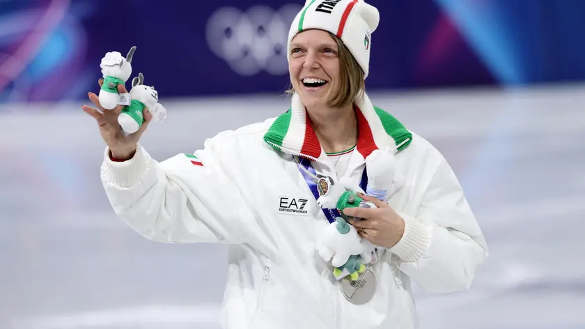 (ANSA) - MILANO, 18 FEB - La presidente del Consiglio "era molto contenta per noi. Sapere che era sugli spalti a fare il tifo è sicuramente un grande orgoglio. Le abbiamo promesso una tutina e faremo in modo di fargliela avere". Arianna Fontana dopo aver vinto l'argento così racconta il retroscena dell'incontro a bordo pista con la premier. (ANSA).