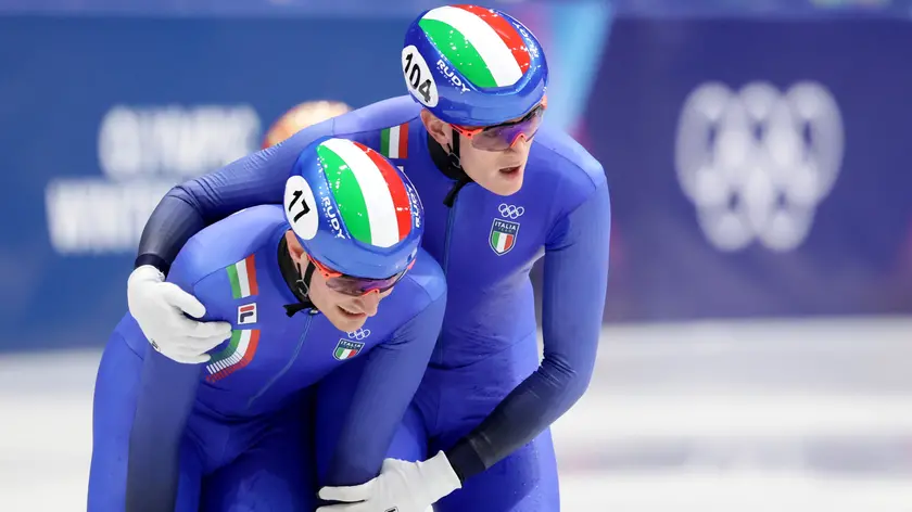 (ANSA) - MILANO, 20 FEB - Gli azzurri della staffetta 5000 metri dello short track hanno conquistato il bronzo ai Giochi di Milano Cortina. La squadra composta da Thomas Nadalini, Pietro Sighel, Luca Spechenhauser e Andrea Cassinelli regala all'Italia la medaglia n.27. (ANSA).