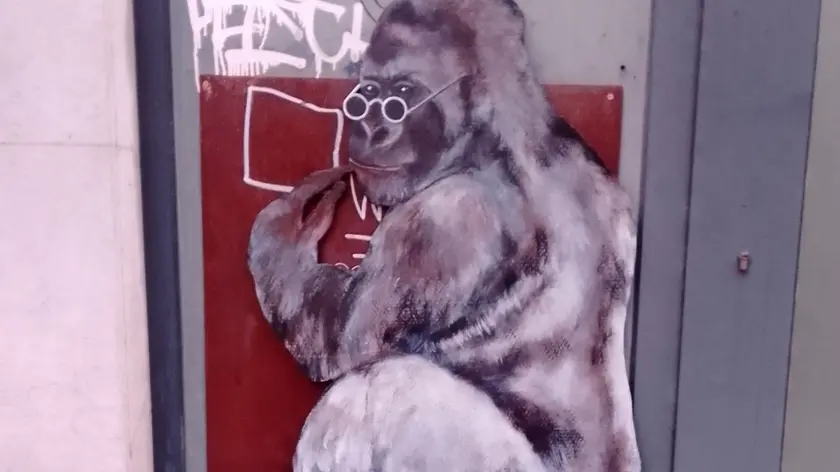 Per 1 Aprile provocazione del Banksy triestino, uno scimpanzè che scrive