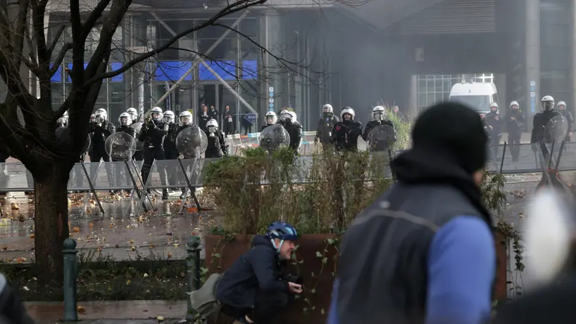 (ANSA) - BRUXELLES, 18 DIC - Sale la tensione a Bruxelles durante le proteste dei trattori in corso a Place du Luxembourg, davanti agli edifici del Parlamento europeo. La polizia è intervenuta inizialmente con l'uso di idranti per disperdere i manifestanti, per poi avanzare lanciando fumogeni. I manifestanti hanno lanciato patate, barbabietole, uova, pietre, bottiglie e petardi. Le vetrate dell'edificio della Stazione Europa, che si affaccia sulla piazza, sono state danneggiate. I disordini sono durati alcuni minuti. Successivamente, le forze dell'ordine sono arretrate lungo la recinzione di filo spinato installata per impedire l'accesso all'Eurocamera. (ANSA).