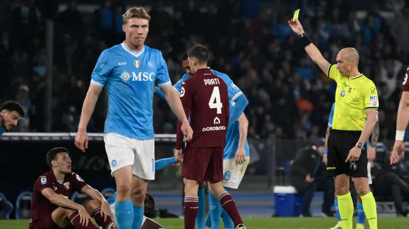 (ANSA) - NAPOLI, 06 MAR - Napoli-Torino 2-1 nell'anticipo di venerdì della 28/a giornata di Serie A. Gli azzurri partono bene e al 7' trovano subito il gol con Alisson. Risposta Toro con Vlasic, poi una palla gol per Hojlund. A inizio secondo tempo si rivede in campo Anguissa. Al 68' Elmas raddoppia. Inutile la rete granata all'87' di Casadei. (ANSA).