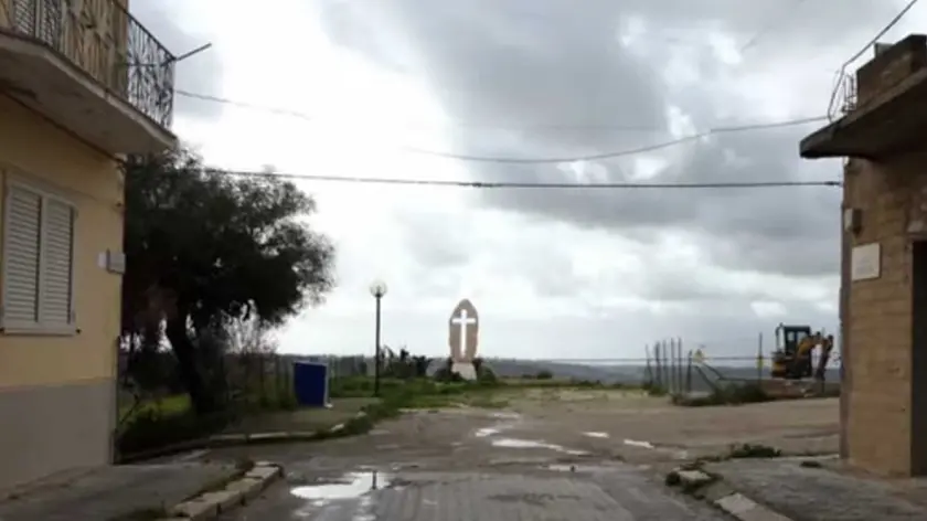 Sopralluogo con droni a Niscemi, in piedi la Croce, simbolo di resistenza