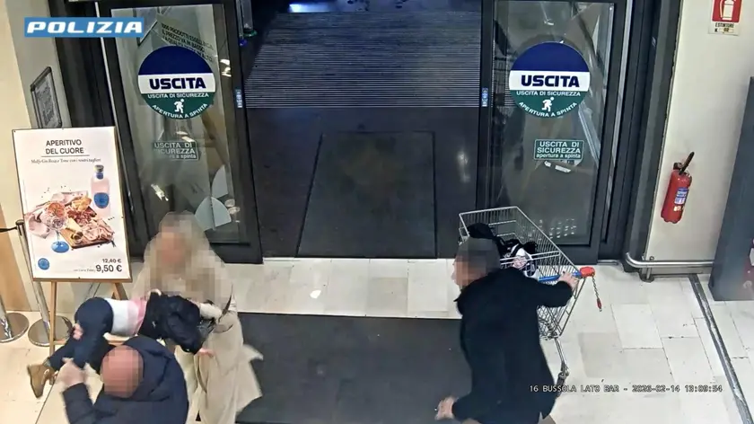 (ANSA) - BERGAMO, 15 FEB - Si trovava a Bergamo da qualche tempo, ma non era mai stato controllato dalle forze dell'ordine l'uomo di 47 anni - un cittadino romeno, senza fissa dimora - che ieri è stato bloccato dai presenti mentre tentava di sottrarre alla madre la figlia di un anno e mezzo all'ingresso del supermercato Esselunga di via Corridoni, a Bergamo. Arrestato dalla polizia, si trova ora in carcere e domani sarà sentito dal gip per la convalida dell'arresto. Come si vede dalle immagini di quei concitati istanti, diramate dalla polizia di Stato che lo ha arrestato, l'uomo ha incrociato la mamma e la bambina per caso, mentre entrava nel punto vendita e loro uscivano, presente anche il padre della piccola, che è subito intervenuto. Una specie di raptus, apparentemente senza motivo, nel quale la bimba ha riportato la frattura del femore. Portata in ospedale, è ora a casa con i suoi genitori. (ANSA).